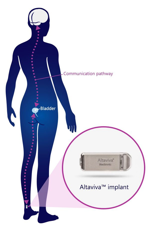This therapy is not intended for patients who: are not good candidates for surgery or have conditions that make it hard to heal from wounds (such as uncontrolled diabetes, swelling in the lower leg, or nerve problems in the leg); have metal implanted within 5 cm of where the Altaviva™ device would be placed; have a current or unresolved blockage in the urinary tract caused by things like an enlarged prostate, cancer, or urethral narrowing; are allergic to any materials in the Altaviva™ device. The Altaviva™ system may affect or be affected by other implanted medical devices, including pacemakers and defibrillators.